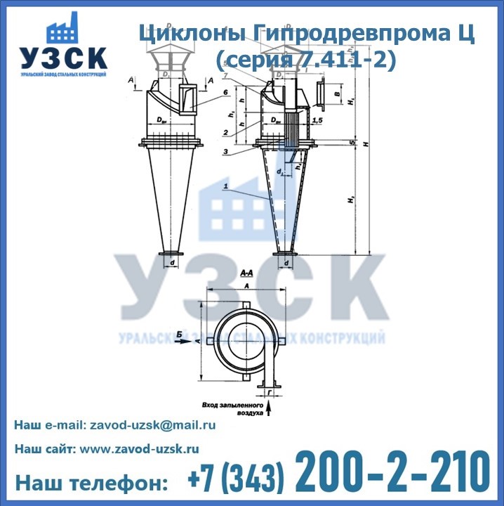 Циклоны Гипродревпрома Ц (серия 7.411-2) высокого качества можно купить в компании «УЗСК» в Майкопе. Наши специалисты предоставят всю необходимую информацию информацию и помогут с выбором модели циклона. Подробные технические характеристики, конструкцию, параметры, ассортимент и стоимость продукции можно также найти на сайте УЗСК.