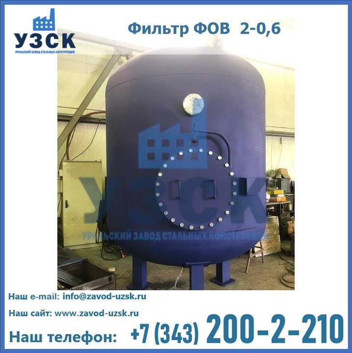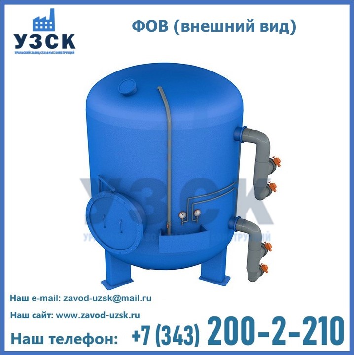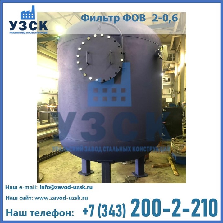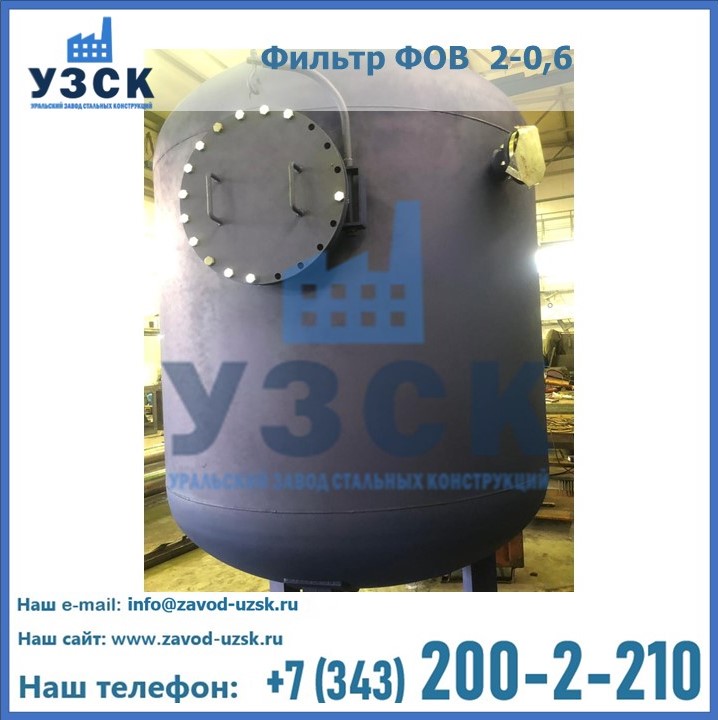 Удаление взвешенных веществ различного уровня дисперсности из рабочих жидкостей эффективно проводит фильтр осветлительный типа ФОВ (скорый или механический) — вертикально-цилиндрической формы установка, разработанная для систем водоподготовки различного класса. Оборудование представляет собой однокамерный агрегат для очистки воды рекомендованный для применения на станциях очистки стоков, в коммунальных котельных, на ТЭЦ, в промышленных отопительных системах и пр. Заказать производство ФОВ фильтров предлагает наш Уральский завод стальных конструкций в Майкопе. У нас можно купить фильтрационное оборудование различного класса и типа, в том числе фильтры ФОВ из нержавеющей стали.